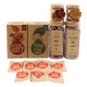 Hộp quà gồm: Đậu nành sấy cỏ ngọt vị cay, đậu phộng mè cay, mãng cầu sấy dẻo, gừng nướng mật ong, hạt sen sấy, điều rang muối tách vỏ lụa, túi von xoài sấy dẻo, túi quà
